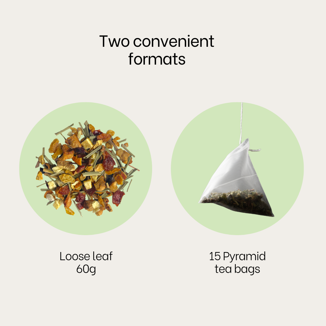 Refreshing botanical blend | Naturally caffeine-free | 100% natural ingredients